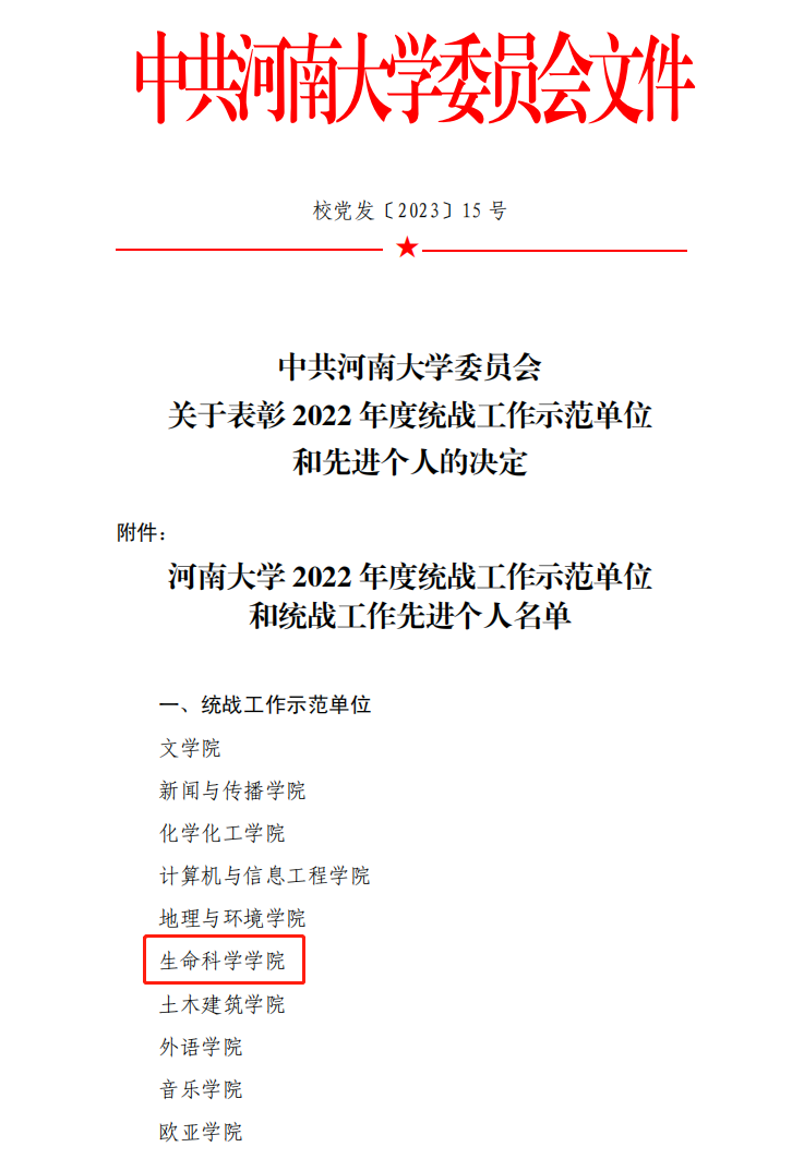 近日,中共bat365在线平台官网登录委员会下发《关于表彰 2022年度统战工作示范单位和先进个人的通知》(校党发〔2023〕15号)文件,学院党委被授予“bat365在线平台官网登录2022年度统战工作示范单位”荣誉称号。