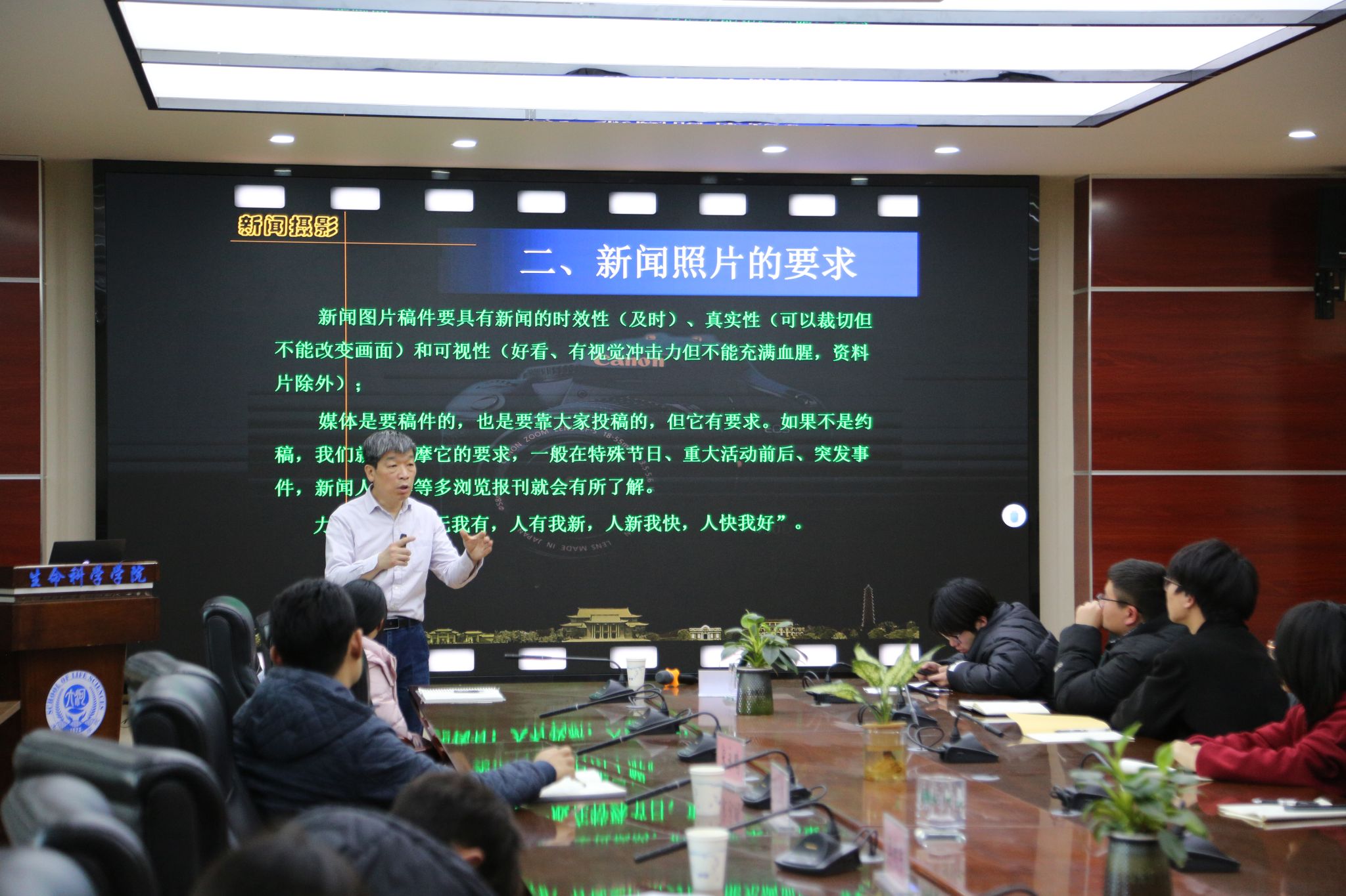 为进一步推进学院宣传思想文化工作,提高师生新闻宣传能力,3月7日,bat365在线平台官网登录在B201举办新闻宣传能力培训会,邀请中国教育学会摄影专业委员会常务理事、河南教育学会摄影教育委员会副理事长许立民作新闻摄影讲座。学院党委副书记宋永鹏及宣传工作教师代表、青年媒体中心全体人员参加培训会。会议由学院党委办公室主任李靖宇主持。