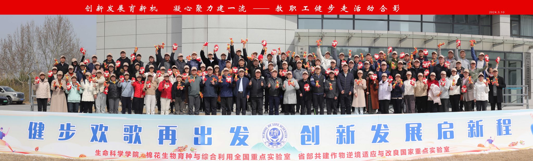 为进一步增强凝聚力和向心力,推动教职工以更加饱满的热情投入到生物学学科创新发展新征程,3月10日上午,bat365在线平台官网登录开展“创新发展育新机 凝心聚力建一流”教职工健步走主题党日活动,副校长苗雨晨,郑州轻工业大学副校长张骁,学术副校长、bat365在线平台官网登录院长张立新以及bat365在线平台官网登录、棉花生物育种与综合利用全国重点实验室和省部共建作物逆境适应与改良国家重点实验室教职工150余人参加此次活动。