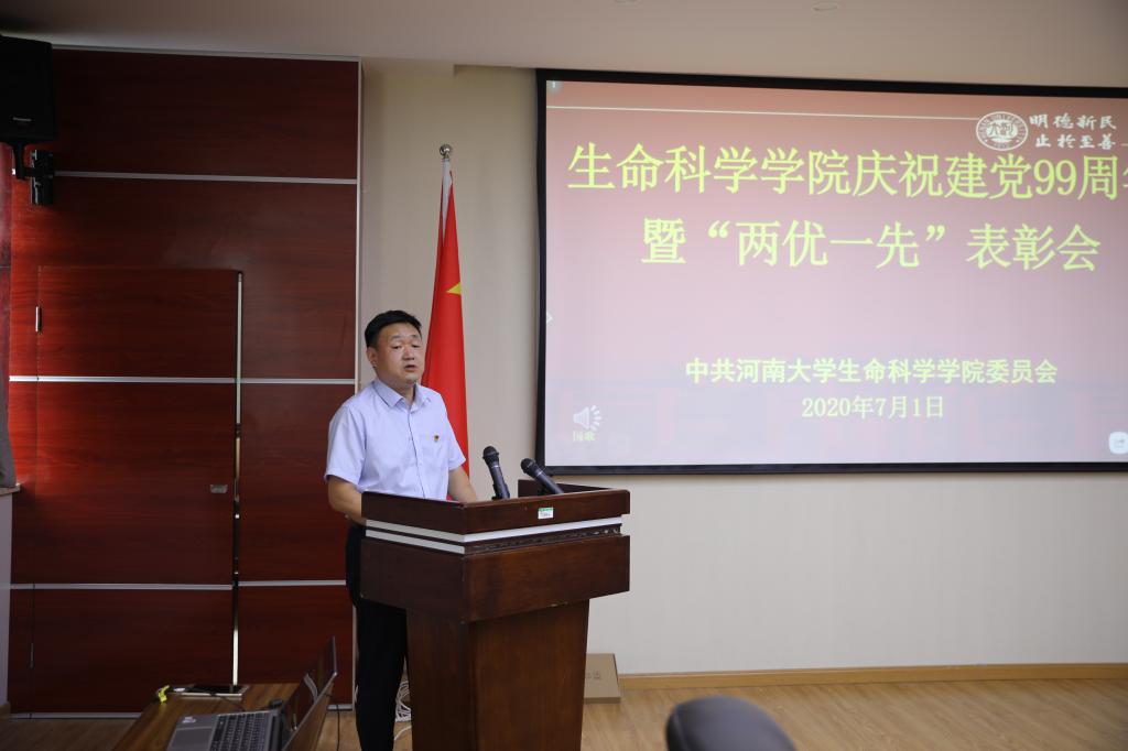 学院党委书记赵东保向获得表彰的集体和个人表示祝贺,向辛勤工作的全院师生致以敬意。他在讲话中回顾了党的光辉历程和丰功伟绩,要求全体党员要坚定理想信念,以习近平新时代中国特色社会主义思想为指导,把思想和行动统一到党中央决策部署上去,集中精力办好教育事业,全力以赴建设好一流学科。“党的建设是学院各项事业不断取得进步的思想基础和组织保障”,赵东保在讲话中强调,要进一步全面加强基层党的建设,完善基层党组织的领导体制,学院党委、各党支部要严格按照新时代党的建设总要求,坚持培育为基、重在建设、典型引领、整体推进,以政治建设为统领,以质量攻坚为动力,以提升组织力为重点,以推动事业发展为落脚点,对标看齐,改革创新,为加快“双一流”建设、实现内涵式发展提供坚强的组织保证。他希望广大党员要有新担当、新作为,大力弘扬“脚踏实地、奋发有为”的精神,在自己的岗位上发扬传统、踏实肯干,投身在“进行伟大斗争、建设伟大工程、推进伟大事业、实现伟大梦想”的历史进程中,勇担使命、大有作为,以一流学科建设为契机,不断开创bat365在线平台官网登录改革发展新局面。