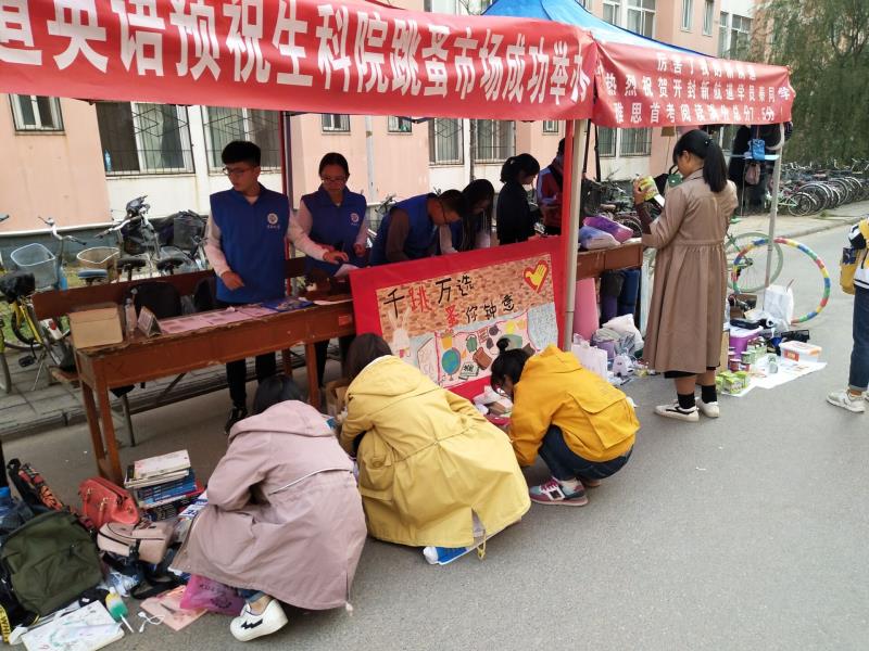2018年10月11日至14日,bat365在线平台官网登录青年志愿者协会在北苑宿舍28号楼与与29号楼之间举办了主题为“千跳万选,蚤你钟意”跳蚤市场活动。