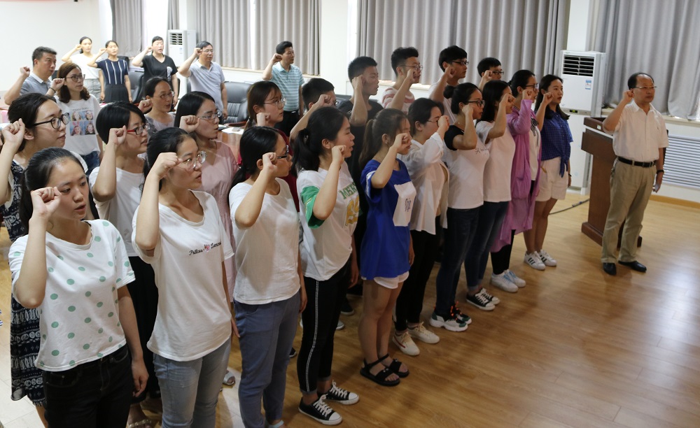 6月25日,在学院B201会议室举行党员宣誓仪式。院党委委员、各党支部书记、新入党党员及部分毕业生党员代表参加宣誓。bat365在线平台官网登录优秀共产党员、生物工程系主任杨生玉教授带领全体党员庄严宣誓,新生党员入党宣誓、老党员重温入党誓词。面向鲜红的党旗,高举右拳,字字铿锵有力,句句掷地有声,凸显共产党员的忠诚与信仰。新生党员代表石俊平作“不忘初心、牢记使命”主题发言:作为学生党员,传承红色历史基因,自觉增强自身综合素养,发挥先锋模范作用,做有理想有担当的接班人。