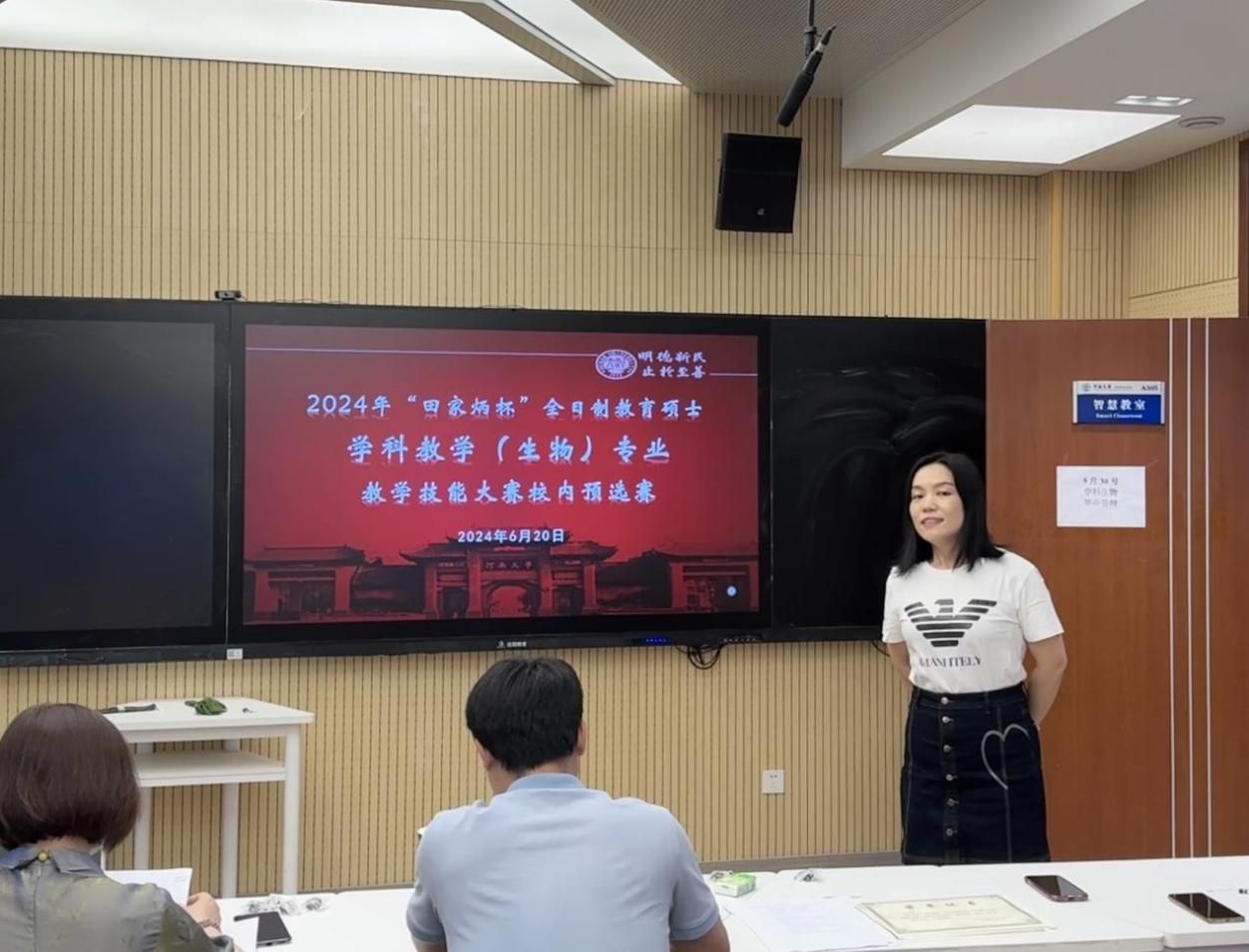6月20日下午,bat365在线平台官网登录在智慧教室A305成功举办了2024年全国“田家炳杯”全日制教育硕士学科教学(生物)专业教学技能大赛校内预选赛,18名2023级学科教学(生物)教育硕士参赛。学院副院长李志芳,职业导师、开封高级中学教师史静娟以及学业导师苏亚蕊、魏金凤、肖保林、贺洁出席此次预选赛并担任评委。