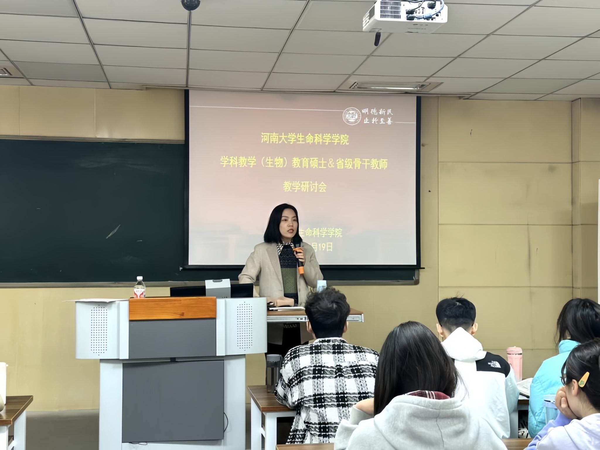 在研讨会前期准备阶段,学院导师代表张彤、苏亚蕊、贺洁带领2023级学科教学(生物)教育硕士生赴开封市第十四中学参加“河南省2023年省级骨干教师生物学培训‘同课异构’教学研讨交流活动”。开封市第十四中学教师吕雪童、三门峡育才中学教师王金蕊以《人类的起源与进化》示例课程,通过不同的教学方法和策略分别进行课堂教学展示,分享各自的教学心得体会。