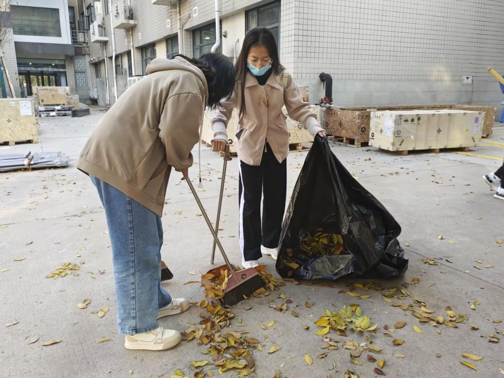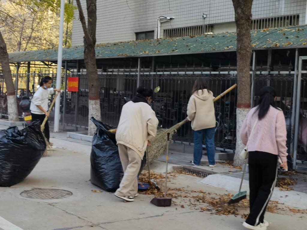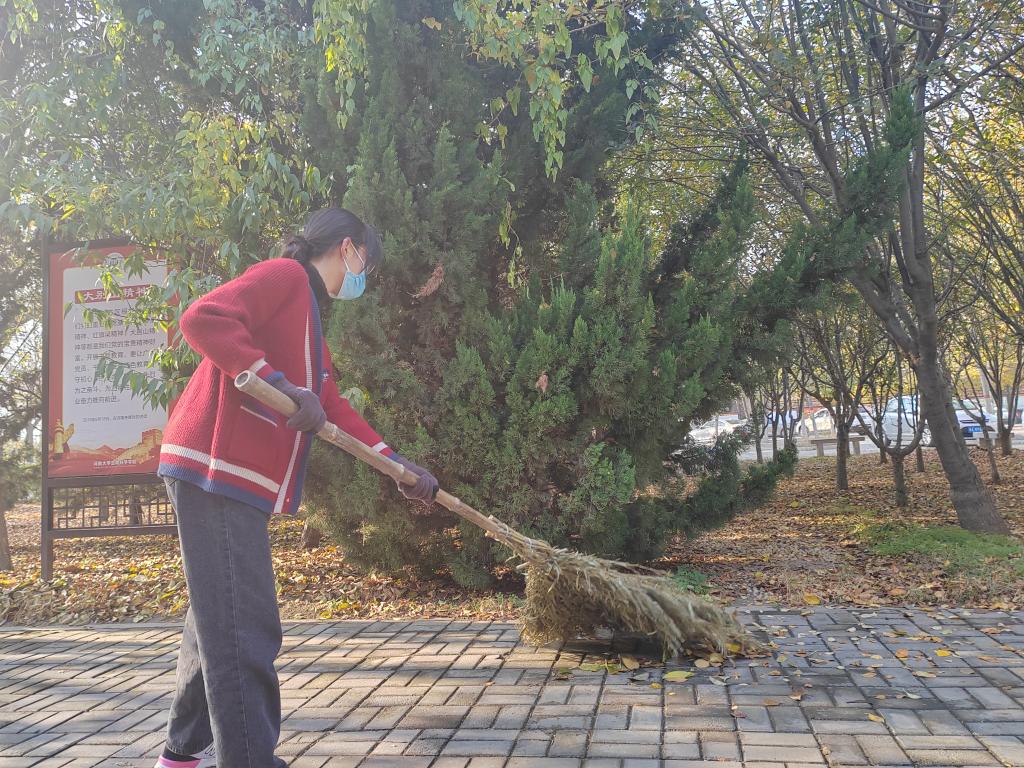 下午三点,同学们按时来到学院,负责人按照4人一组进行劳动分配,并进行区域分工。随后,各小组成员领取清洁工具并前往指定区域有序开展清洁工作。有的志愿者清扫地面的落叶和树枝,有的志愿者捡拾白色垃圾,还有的志愿者躬身清理草丛深处的垃圾,用自己的实际行动为校园美化贡献一份力量。各区域的同学们们分工合作,团结协作,相互配合,看到任务较重的其他小组,都纷纷前去帮忙。经过近两个小时辛勤的劳动,学院完成了一次大变装,同学们看着自己的劳动成果纷纷露出了满意的笑容。
