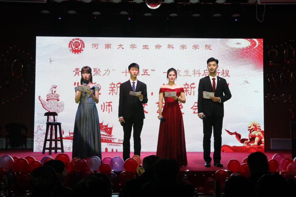 在激情洋溢的开场舞后,学院党委书记赵东保致开幕词。他首先对过去一年的工作进行了回顾和总结,对学院一流学科建设所取得的显著成就表示充分肯定。赵东保指出,2021年将迎来建党100周年,是第一个百年奋斗目标的完成之年,也是“十四五”规划的开局之年,他希望全体生科人牢固树立大局意识,强化责任担当,不断拓宽领域和视野,抓住机遇,积极投身生物学一流学科建设,以优异的成绩向中国共产党成立100周年献礼。