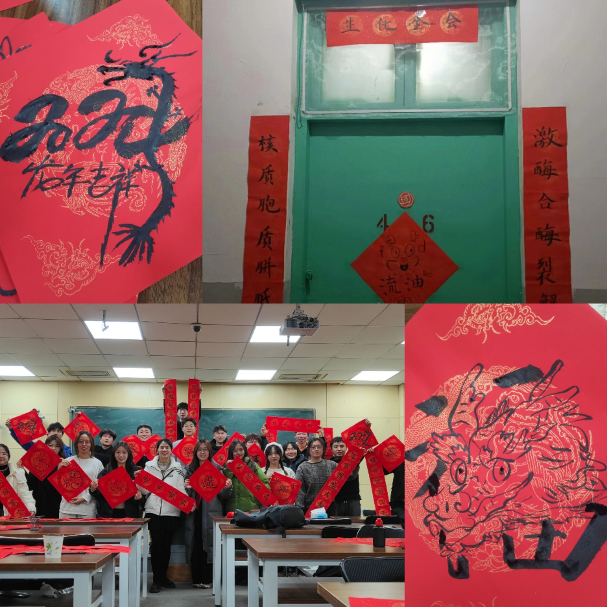 写春联、贴对联是中华优秀传统文化的重要内容,以对仗工整、简洁精巧的文字描绘美好愿景,是中国人过春节的重要形式。学院通过开展“迎新春 写春联”活动,品味新春的“年味”,进一步弘扬中华优秀传统文化,加强了师生的交流和互动,营造了团结向上的氛围和良好的院风家风,共同感受生科大家庭的温馨,为祖国的强盛、学院的发展寄托美好的祝愿。