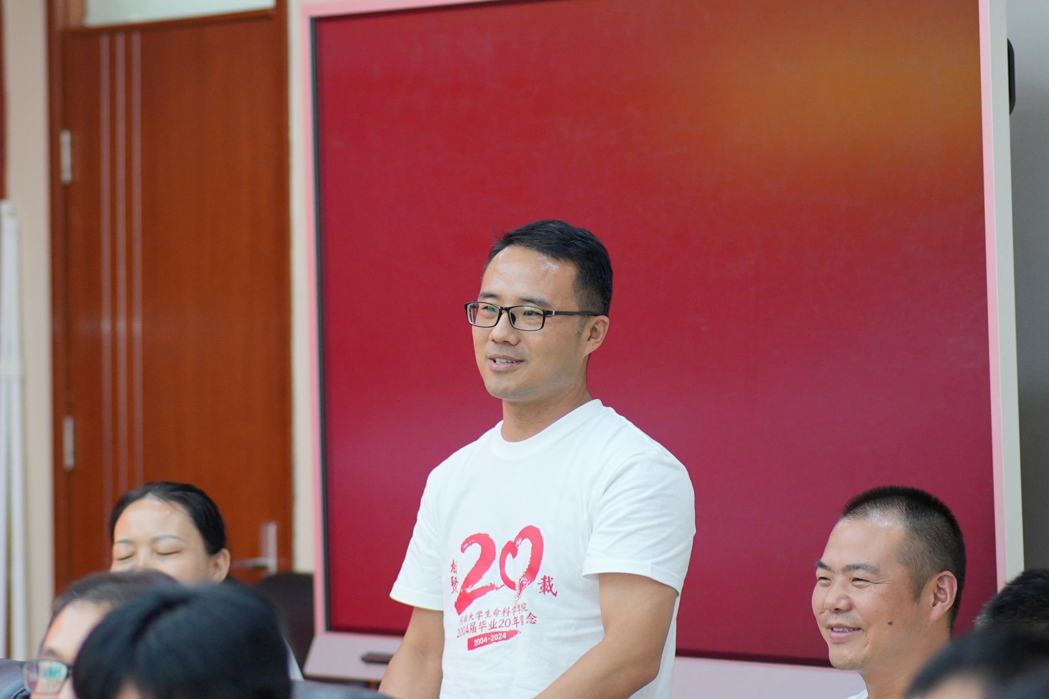 宋纯鹏、王天仕、苗琛等教师代表逐一表达了对各位校友的真诚欢迎和美好祝愿,回忆了与04届毕业生在校期间的美好时光,对学院莘莘学子在不同的领域贡献的生科力量表示肯定。老师们纷纷感慨与同学们虽久别重逢却仍亲若一家人,二十年光阴,河大学子最难能可贵的是始终忠于生命、忠于事业、忠于生活,这份“亲情”历久弥新;毕业二十年的这段时期,是人生实现凤凰涅槃转化的重要节点,2024年的夏天对于04届bat365在线平台官网登录毕业生而言具有重要的纪念意义;“校友就是学校的财富”,希望历届校友持续关注和支持学校、学院的发展,共同进步、一同成长。