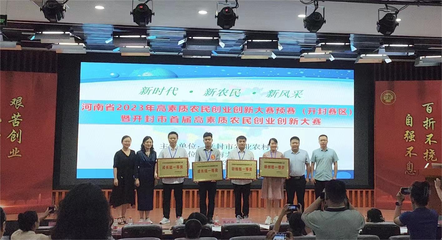 比赛采取7分钟项目路演+5分钟评委提问的模式进行。路演环节,参赛选手围绕“立农为业、创新发展、联农共富、振兴乡村”主题,站位集聚创新和引领发展,演示创业项目发展理念,展示主体赋能能力。评委提问环节,评委针对项目发展现状、技术创新点、产业创收、创业设想等内容进行现场提问与打分。最后,河南省曹操爱民农业发展有限公司的“水坡镇三产融合”项目、尉氏县圉裕农业种植专业合作社示范基地项目获得初创组一等奖,河南瑞通灌排设备有限公司的“瑞通新型职业农人参与高标准农田建设规模化种植托管运营、助力乡村振兴发展”项目、河南省碧水源农业科技有限公司的“弘扬中医药文化,打造百草园综合体”项目获得成长组一等奖。这4个项目将代表开封市参加河南省2023届高素质农民创业创新大赛。尉氏县薯满地农业科技有限公司的“脱毒甘薯苗冷棚快繁应用”项目、开封思淼农业服务中心的“经作种植,助力乡村振兴”项目、杞县明达家庭农场的“文棒好农品,绿色真营养”项目、河南佳昌生态农业科技有限公司的“香葱种植产业发展”项目、开封农巨人农业科技发展有限公司的“双河镇汴京稻香稻虾混养产业园”项目、宸亚科技有限公司的“新一代BIPV智能温室光伏大棚”项目、杞县长友生态种植专业合作社的“软籽石榴采摘园”项目、杞县新奇特农业种植专业合作社的“金杞新奇特菊花”项目获得优秀奖。