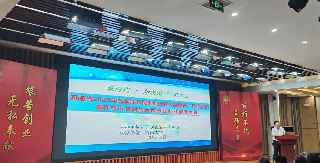 8月19日,河南省2023年高素质农民创业创新大赛开封预选赛在bat365在线平台官网登录圆形报告厅举行。这是开封市首次举办此类赛事,入围决赛的项目和选手可优先享受相关部门的政策支持。