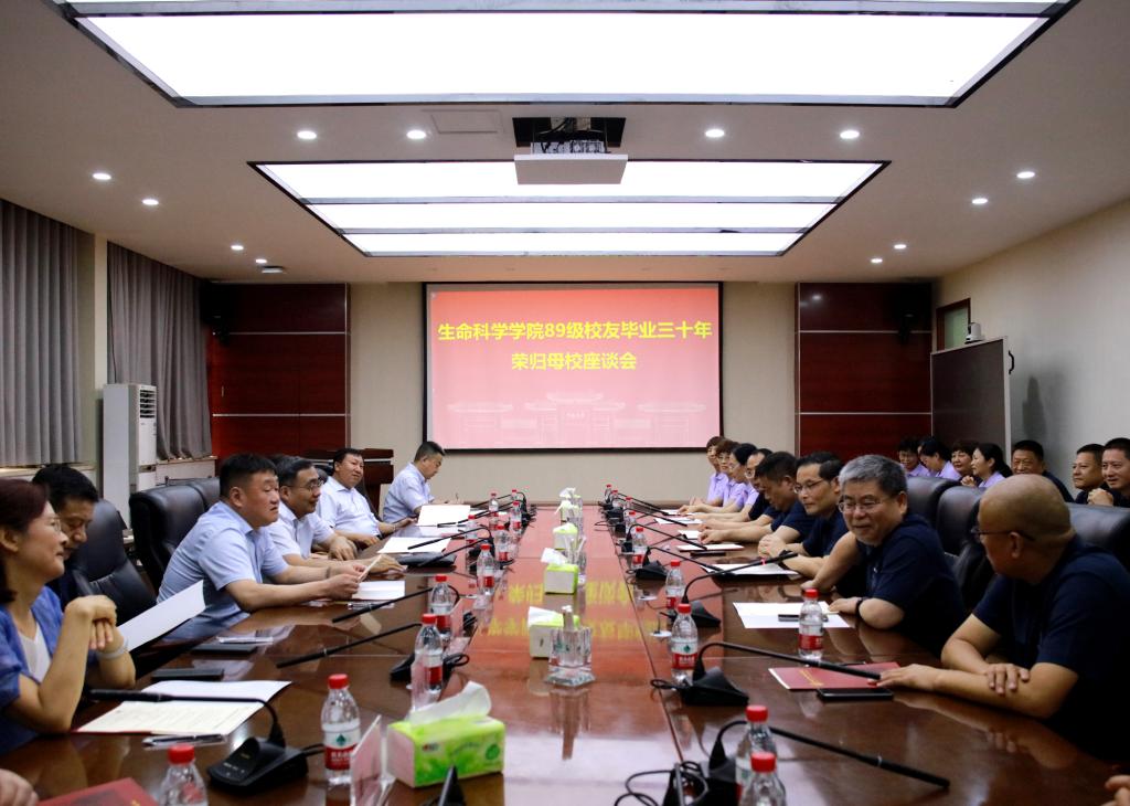7月21日下午,bat365在线平台官网登录生物系89级校友毕业30年返校座谈会在学院B201会议室举行。bat365在线平台官网登录原校长宋纯鹏,89级辅导员、河南农业大学副校长尚富德,bat365在线平台官网登录副校长、bat365在线平台官网登录院长张立新,bat365在线平台官网登录副校长苗雨晨,开封市政协副主席苗琛,学院党委书记吴建伟,执行院长王刚及教师代表参加座谈会。会议由89级毕业生、棉花生物育种与综合利用全国重点实验室/省部共建作物逆境适应与改良国家重点实验室常务副主任安国勇主持。