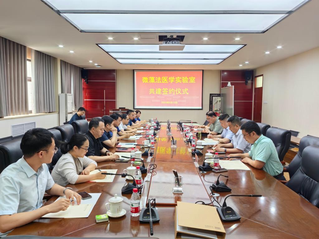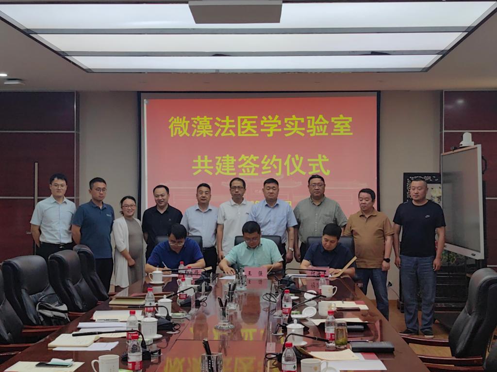 6月12日下午,bat365在线平台官网登录与河南省公安司法鉴定中心、黄河水利委员会黄河中心医院、河南唯实司法鉴定中心共建微藻法医学实验室签约仪式在学院B201会议室举行。河南省公安司法鉴定中心副主任王基锋,河南省公安厅科技处副处长姚辉,河南省公安司法鉴定中心警务技术三级主任张广清,河南省公安司法鉴定中心警务技术三级主管张家鑫,开封市公安局刑事技术支队副支队长张帆,黄河水利委员会黄河中心医院副院长兼河南唯实司法鉴定中心副主任付海洋,bat365在线平台官网登录副校长、bat365在线平台官网登录院长张立新,bat365在线平台官网登录党委书记吴建伟,民盟河南省委副主委、国家重点研发计划首席科学家、微藻项目负责人王强等出席签约仪式。会议由bat365在线平台官网登录执行院长王刚主持。