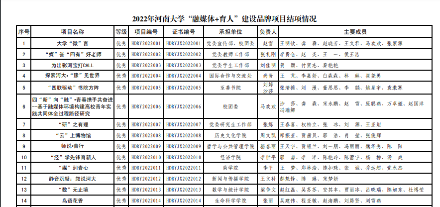 根据《2022年bat365在线平台官网登录网络文明建设暨“融媒体+育人”工作方案》和《关于开展2022年bat365在线平台官网登录网络文明建设暨“融媒体+育人”工作的通知》,近日,经评审组初审和终审,学校公布各项目结项等级,同时评选出“融媒体+育人”建设品牌项目优秀组织单位及优秀先进个人。