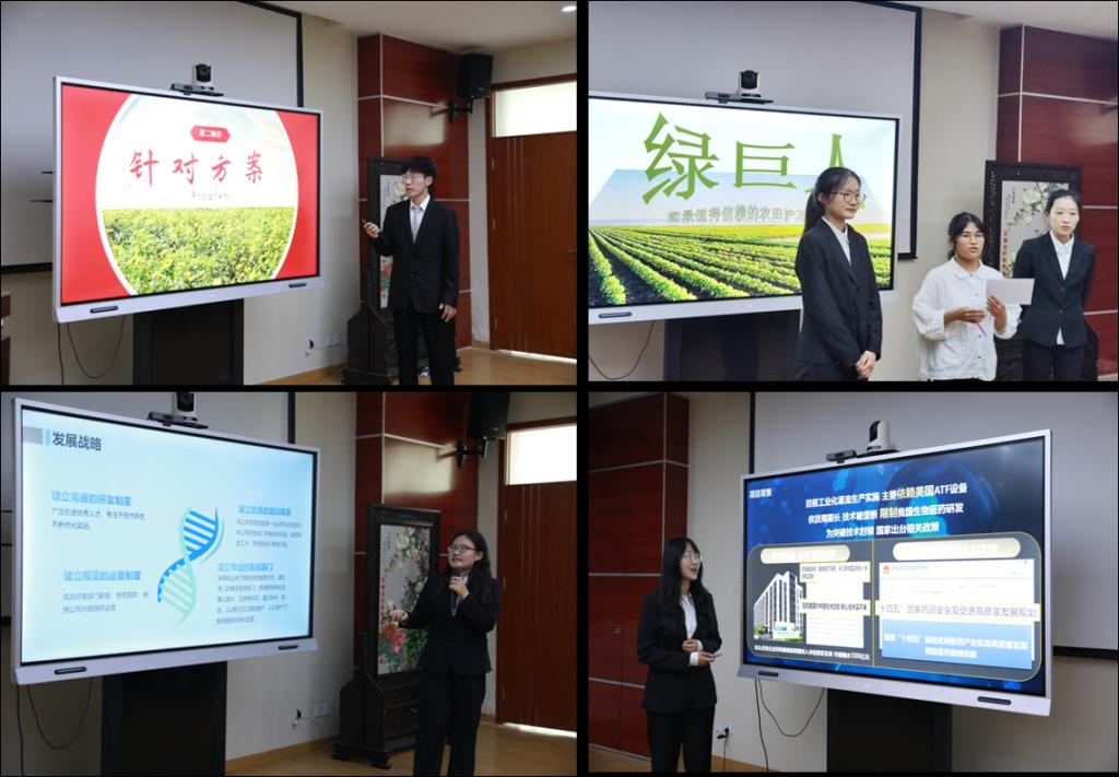 本次参赛团队依次进行作品展示,选拔赛分为PPT路演展示与评委提问答辩两部分。各参赛团队代表分别从项目介绍、团队运营、市场营销、财务分析与远景目标等各个方面进行展示;评委老师就项目计划书、项目前景、项目思路构建等多方面对选手们提出了合理的建议,希望同学们能扩展思路,真正做到创新。参赛选手们认真听取意见和建议,积极回答问题,充分展现了生科学子自信昂扬的精神风貌。