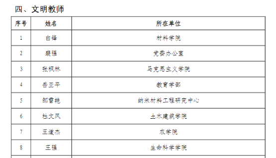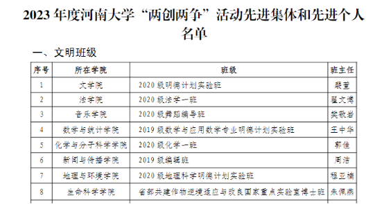 为深入学习贯彻党的二十大精神和习近平总书记关于弘扬雷锋精神的重要指示精神,充分发挥先进典型的示范引领和价值导向作用。近日,根据《中共河南省委教育工作委员会河南省教育厅关于开展2023年度全省教育系统“两创两争”活动先进集体和先进个人推选工作的通知》(豫教工委〔2023〕36 号)精神,学校积极开展“两创两争”活动先进集体和先进个人评选工作,评选内容包括2023年度文明班级、文明宿舍、文明社团、文明学生、文明教师和文明网民六个方面,bat365在线平台官网登录在此次评选结果中荣获佳绩。