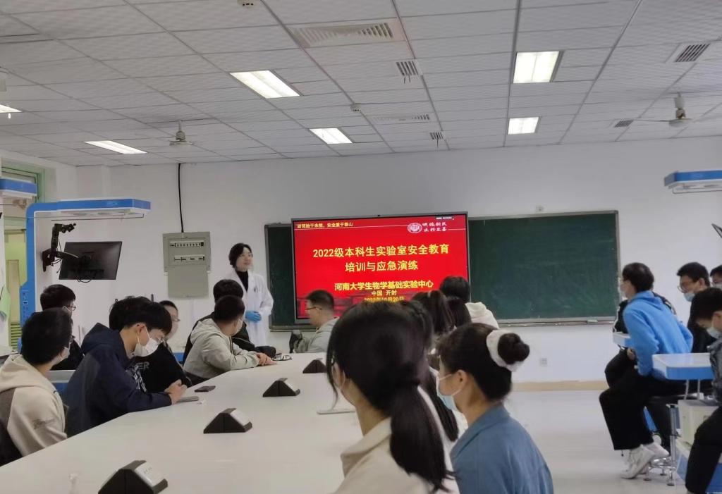 为进一步落实《教育部关于加强高校实验室安全工作的意见》,切实增强师生实验室安全红线意识,提高面对实验室突发事故的应急处理能力,做好2022级本科生实验室安全教育和准入工作,10月20日下午,生物基础实验教学中心举行实验室安全教育培训与应急演练,基础实验中心教师及2022级本科生参加本次活动。