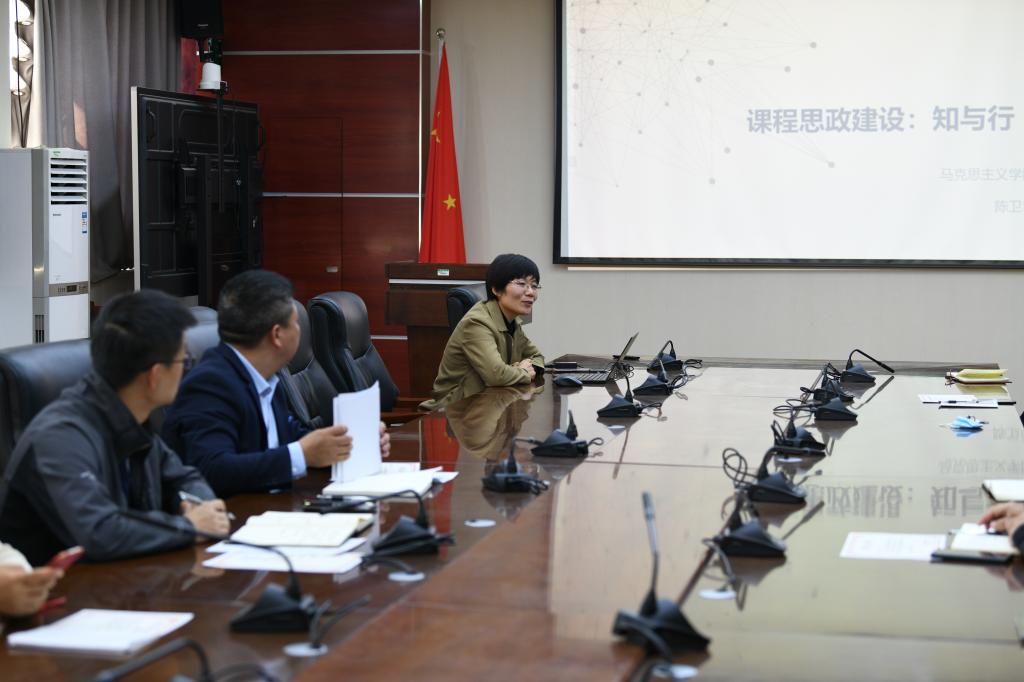 会议邀请了马克思主义学院教师、bat365在线官网与马院共建的思政课程与课程思政联合研究省级示范中心骨干成员陈卫华副教授作了题为“课程思政:知与行”的报告,从“课程思政是什么”“课程思政怎么做怎么评”“课程思政的大原则”3个方面深入浅出的为大家介绍了课程思政开展的必要性和重要性、专业课程如何有机融合思政元素和如何进行课程思政评价等,得到了大家的热烈反响。