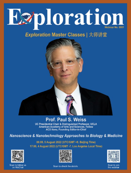 8月5日,首期Exploration –大师讲堂正式启动,特邀著名纳米生物学家,ACS Nano创刊主编,加州大学洛杉矶分校讲席教授Paul S. Weiss教授为首期报告嘉宾。本次大师讲堂为线上举行,由河南大学副校长王学路教授代表学校致辞,Exploration主编梁兴杰教授代表期刊致辞,Exploration执行主编冰洋教授主持开幕仪式和报告。