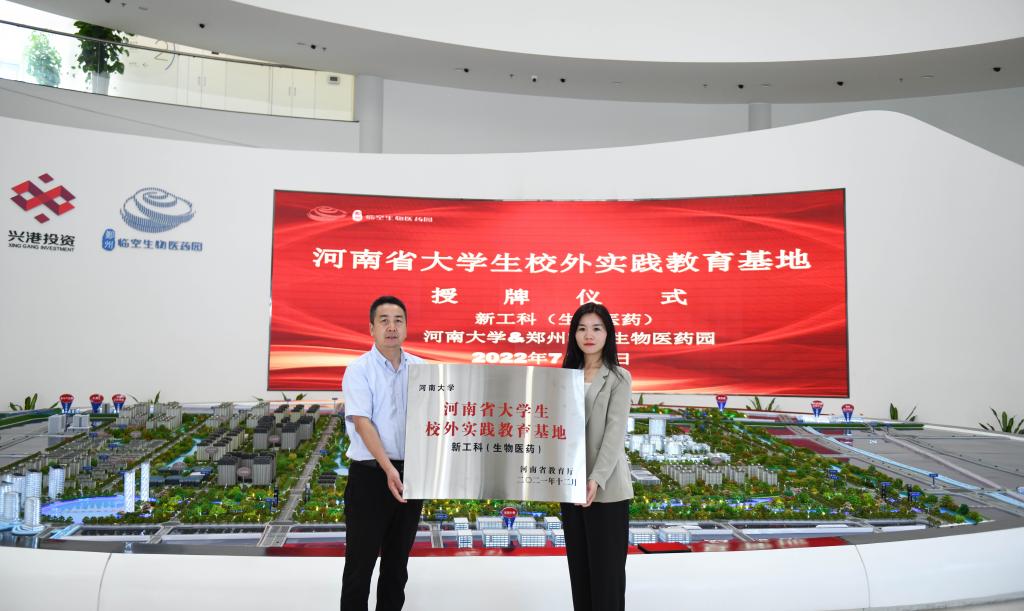 学院一行实地参观郑州临空生物医药产业园,现场为入驻企业推介参与交流的毕业生就业。吴建伟、马兵共同为bat365在线平台官网登录/郑州临空生物医药产业园“河南省新工科(生物医药)大学生校外实践教育基地”揭牌。