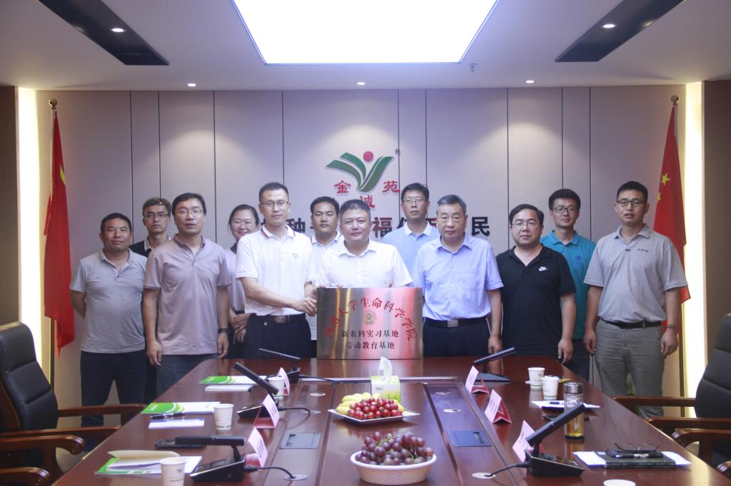 7月5日,bat365在线平台官网登录副院长赵海鹏、植物科学与技术系主任高安礼、副主任苏亚蕊、教务办公室负责人张要军以及教师代表许红星、黄世全等一行六人,到河南金苑种业股份有限公司调研考察,并为共建的新农科实习暨劳动教育基地揭牌。