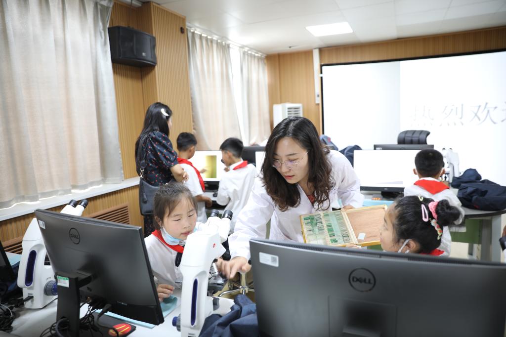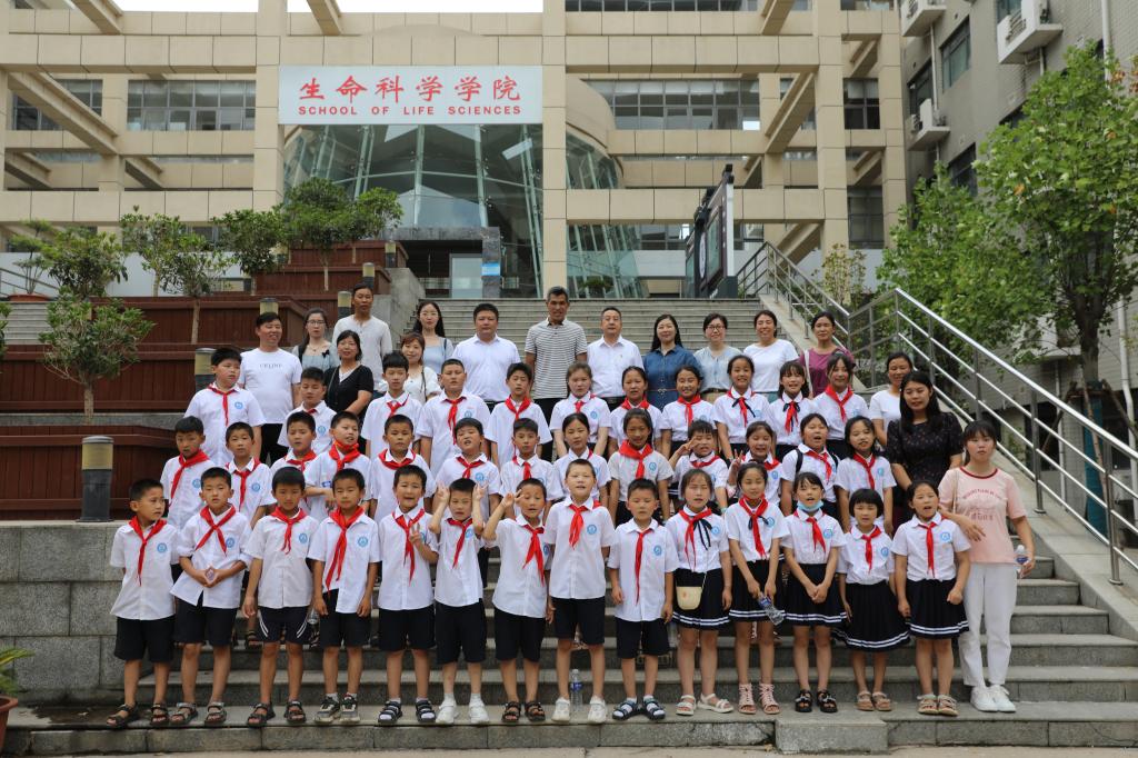 张鹏程师生一行首先到达明伦校区,依次参观了铁塔、大礼堂、7号楼、6号楼等;后又到达金明校区,先后参观了图书馆、bat365在线平台官网登录标本馆、啤酒酿造车间、生物学基础实验教学中心等。张鹏程一行来到bat365在线平台官网登录后,学院教师们在大学里现场为二郎庙小学的孩子们上了一堂生动的科学实践课。在bat365在线平台官网登录标本馆,学院工会副主席柴连琴教授为二郎庙小学的师生们普及了动物和植物的专业知识;在啤酒酿造车间,李华老师为二郎庙的师生们讲解了啤酒酿造过程和发酵工艺;在生物学基础实验教学中心,董薇老师带领同学们透过显微镜观察了玉米根尖切片,为孩子们带来了一场视觉盛宴。随后,二郎庙小学师生们来到bat365在线平台官网登录楼下一一与生科院合影留念。通过“我在大学上堂课”和“我与生科合个影”活动等活动,让孩子们看到科学、了解科学、爱上科学,厚植爱国情怀,树立报国志向。