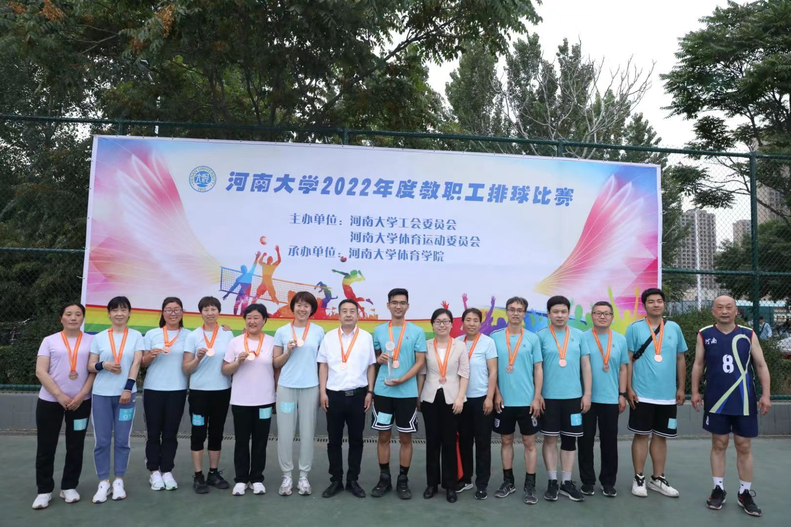 为庆祝bat365在线平台官网登录建校110周年,由bat365在线平台官网登录工会委员会和bat365在线平台官网登录体育运动委员会主办,bat365在线平台官网登录体育学院举办的“同心向未来,接续谱华章”bat365在线平台官网登录2022届教职工排球比赛第三阶段赛程于5月27日落下帷幕。bat365在线平台官网登录代表队经过三个阶段的比赛,最终取得第三名的好成绩,荣获一等奖。校党委副书记张宝明、副校长傅声雷出席闭幕式,张宝明为bat365在线平台官网登录颁奖。