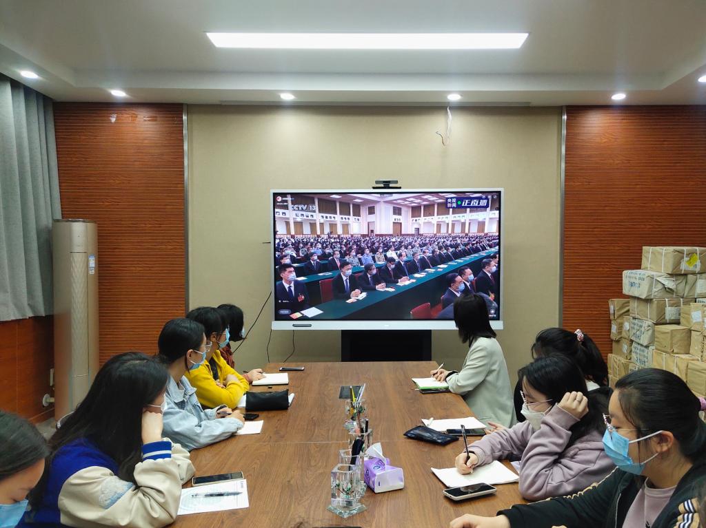 与会人员共同观看了《庆祝中国共产主义青年团成立100周年大会》的现场直播,习近平总书记等党和国家领导人出席了此次大会并发表重要讲话。会议伊始,共青团中央书记处第一书记贺军科发表讲话,他表示中国共青团是在中国共产党的亲自领导下和直接推动下成立的,共青团是把广大中国青年团结凝聚起来,听党指挥,跟党奋斗,始终履行党的助手和后备军的光荣职责,一代代团员青年始终是实现中华民族伟大复兴的先锋力量,共青团百年奋斗的根本初心和全部追求在于坚定听党话,永远跟党走,引领团员青年为党和人民事业接续奋斗,永久奋斗!
