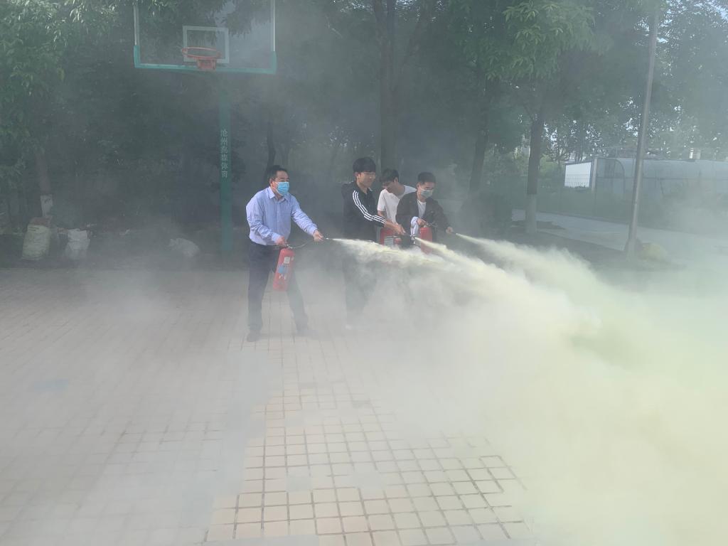在预设的灭火器使用地点,市消防大队专家董耀庭实地向师生们演示如何有效使用灭火器及灭火的安全距离,二十多位师生进行了分组实操练习。