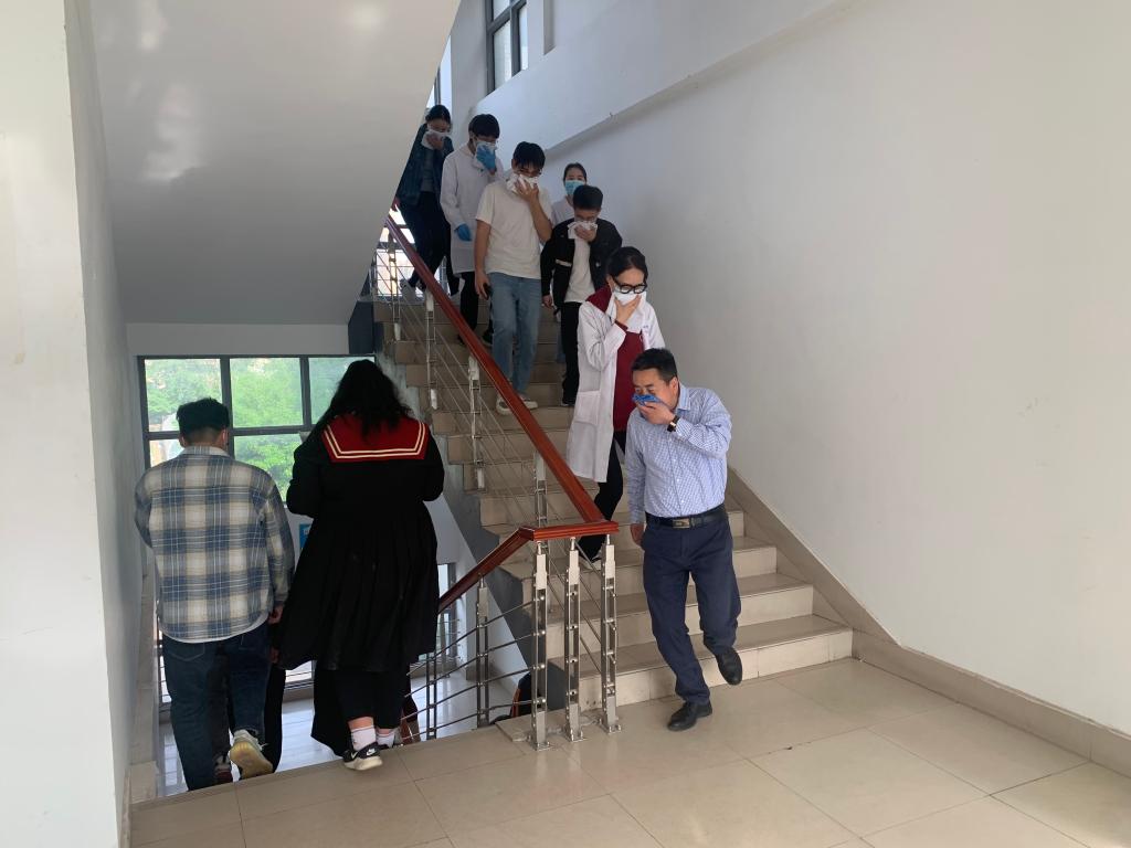 培训结束后,保卫处消防科刘川申向师生们讲解了突发火灾逃生技巧以及安全撤离需要注意的一些要点。随后,师生共同开展消防安全演练,随着发烟弹冒出浓烟,接到逃生指令之后,师生捂住口鼻,沿着指定的疏散路线,从bat365在线平台官网登录大楼消防步梯有序快速撤离。