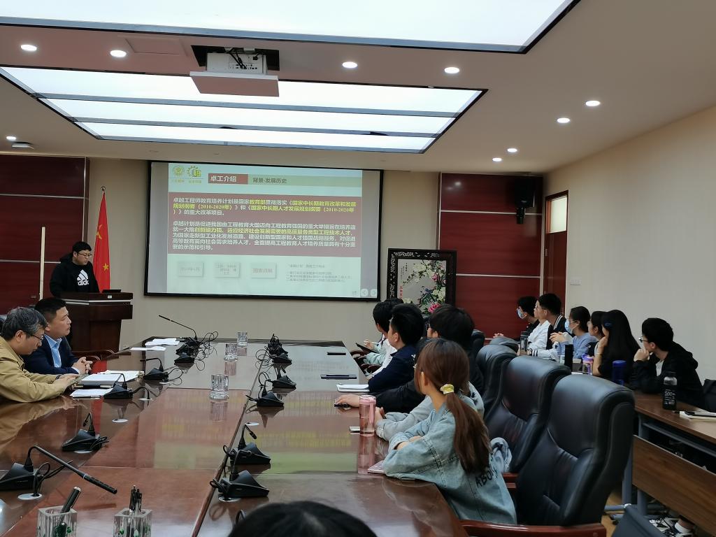 孙杨从卓越工程师计划发展历史、培养理念及模式、创新创业成果以及班级文化等方面做了介绍,最后用“长风破浪会有时,直挂云帆济沧海”的诗句表达了对本届卓工班的期待与祝福,望同学们秉持“工匠精神,追求卓越”的班训,端正态度、砥砺前行。往届卓工班优秀学生代表胡逸文和马兵达分别就自己在卓工班所学所获进行了进经验分享和成果展示。