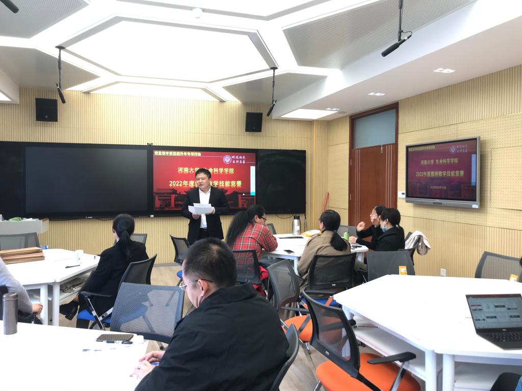 贯彻落实河南省本科高校“课堂教学质量提升年专项行动”实施方案的通知要求,发挥好课堂教学的人才培养主渠道、主阵地、主战场作用,切实提高课堂教学质量和育人水平,4月14日,bat365在线平台官网登录于学院A305智慧教室举办2022年教师教学技能竞赛。副院长赵海鹏出席比赛,部分青年教师现场观摩学习。