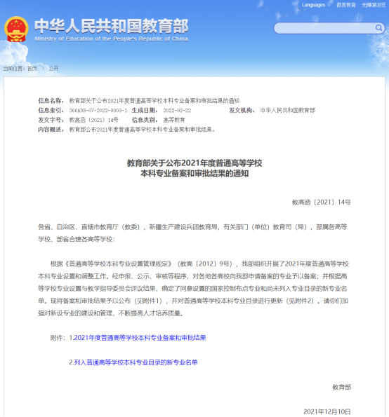 近日,教育部公布了2021年度普通高等学校本科专业备案和审批结果的通知(教高函〔2021〕14号),bat365在线平台官网登录申报的生物信息学(071003)专业获教育部批准备案。