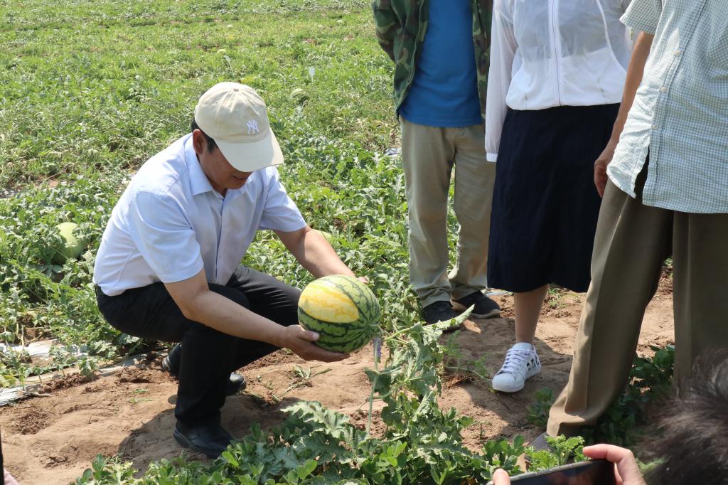 双方共同考察了联合培育的西瓜新品种,并就培育基地建设展开了进一步交流。