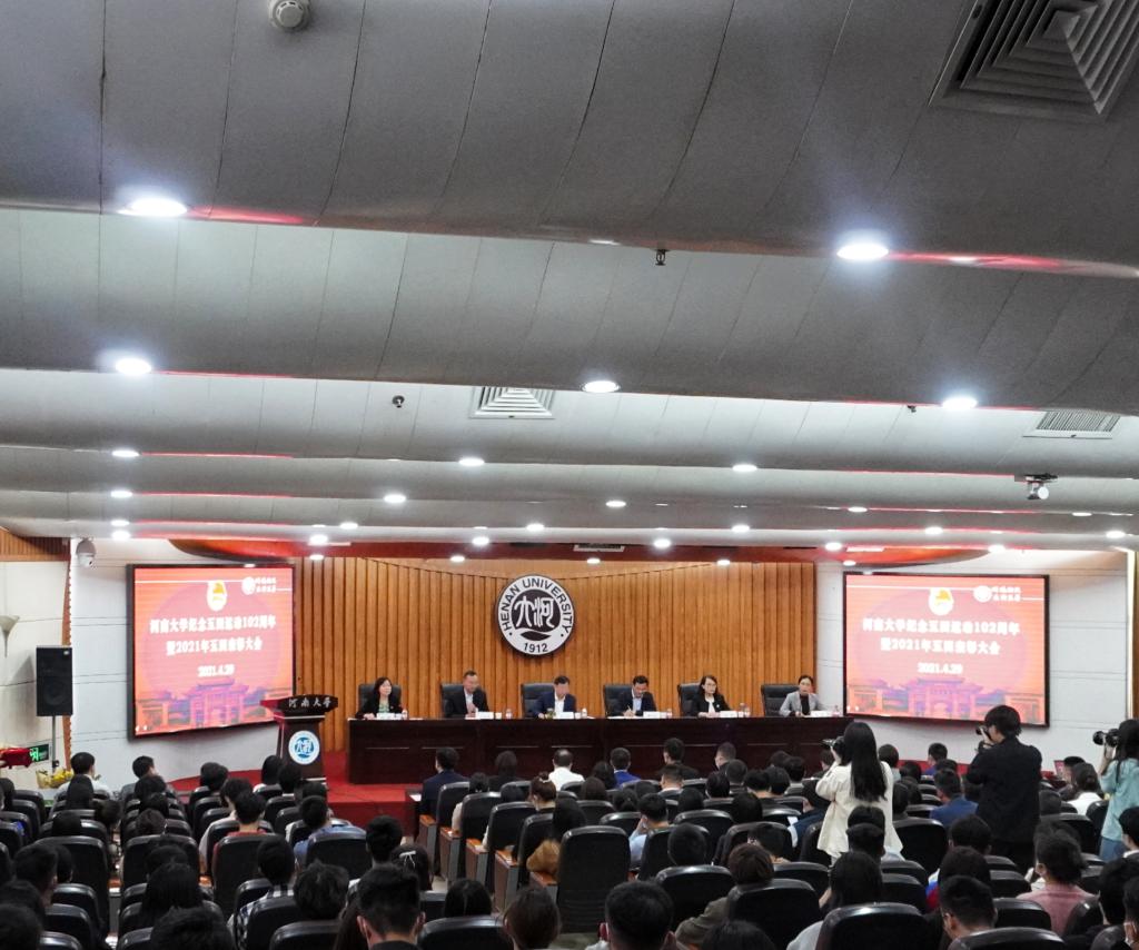 4月29日下午,bat365在线平台官网登录纪念五四运动102周年暨2021年五四表彰大会在金明校区行政楼二楼报告厅隆重举行。校党委副书记张宝明出席会议并讲话,校党委组织部、学生工作部、研究生工作部、校团委负责人,以及部分学院党委副书记、团委书记、青年教师和学生代表参加表彰大会。会上,校团委书记沙莎宣读了2020年度河南省两红两优评选结果,bat365在线平台官网登录团委荣获“河南省五四红旗团委”。
