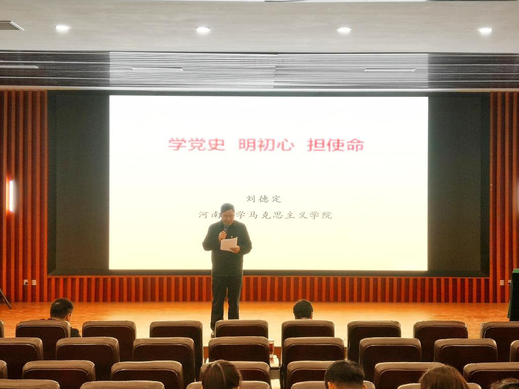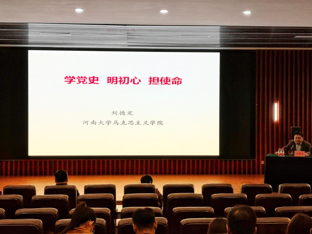 按照党史学习教育工作部署,4月1日下午,我校马克思主义学院刘德定教授来到bat365在线平台官网登录圆楼报告厅,为学院近400名党员师生作《学党史,明初心,担使命》专题报告。报告会由学院党委书记赵东保主持,学院领导班子和全体党员参加学习。