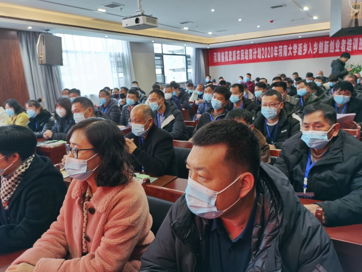 12月8日上午,由bat365在线平台官网登录承担的河南省高素质农民培育计划2020年返乡入乡创新创业者培训班开班仪式在商丘夏邑举行。夏邑县人民政府副县长武静华、bat365在线平台官网登录党委书记赵东保、副院长臧国轻、成教办主任李黎、授课教师代表张海燕教授、班主任王建凯和夏邑县委组织部、农业农村局相关工作人员及100名农民学员参加了开班仪式,仪式由夏邑县农业农村局党组书记、局长胡序涛主持。