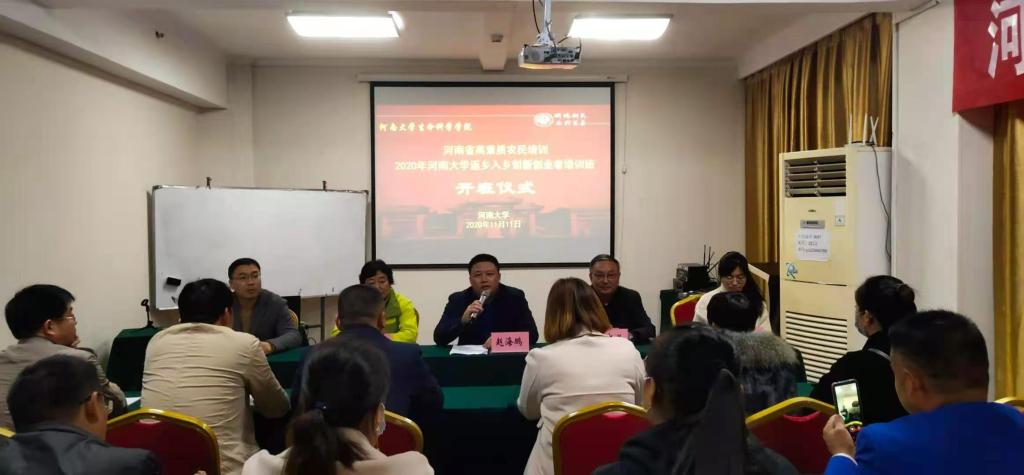 11月11日下午,河南省2020年高素质农民培训—bat365在线平台官网登录返乡入乡创新创业者培训班开班仪式在开封中州银座商务酒店三楼会议室举行,bat365在线平台官网登录副院长赵海鹏,继续教育办公室主任李黎,植物科学与技术系主任高安礼,本次课程管理负责人闫文义教授出席开班仪式,仪式由闫文义教授主持。