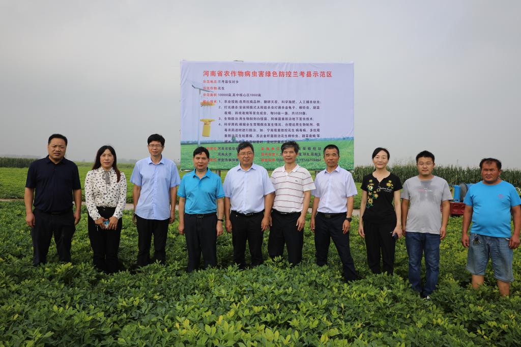 为进一步推进生物学一流学科建设,提升“逆境生物学”服务地方经济能力,助推bat365在线平台官网登录农学学科发展。8月23日,bat365在线平台官网登录党委书记赵东保、棉花生物学国家重点实验室主任周树堂、副院长王道杰一行到兰考县、周口市淮阳区等地实地考察花生、玉米等农作物病虫害绿色防控示范区建设。河南省植保植检站书记吕国强、河南省植保植检站测报科科长赵文新以及兰考县、周口市、淮阳区等相关部门负责人一同考察。