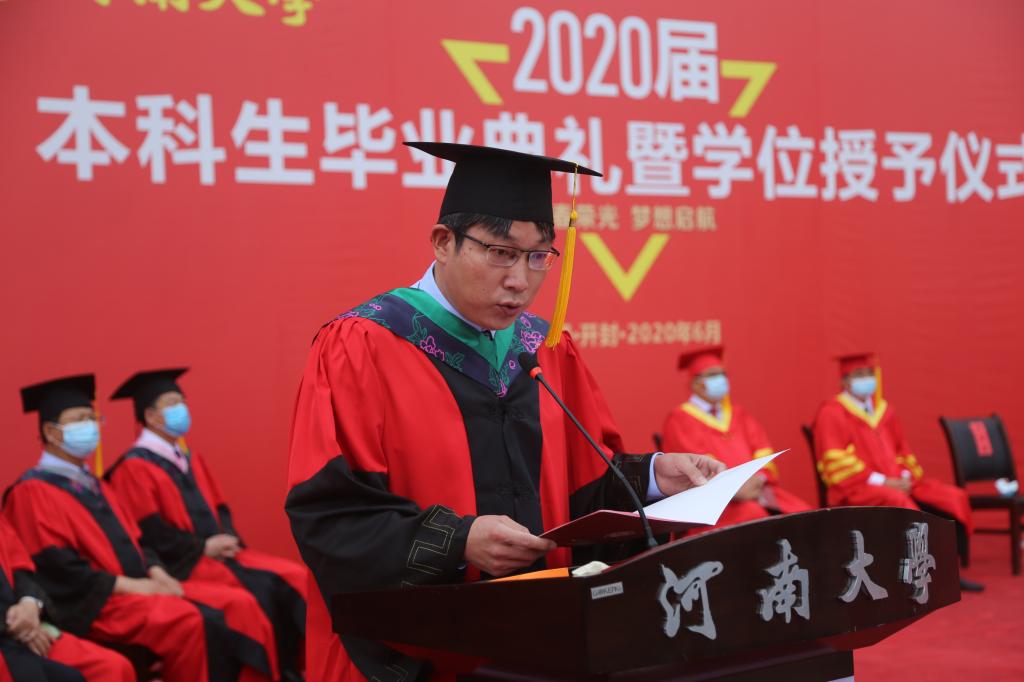 校党委副书记张宝明宣读《关于表彰2020年河南省优秀应届大中专毕业生的决定》和《bat365在线平台官网登录关于表彰2020年优秀应届毕业生的决定》。