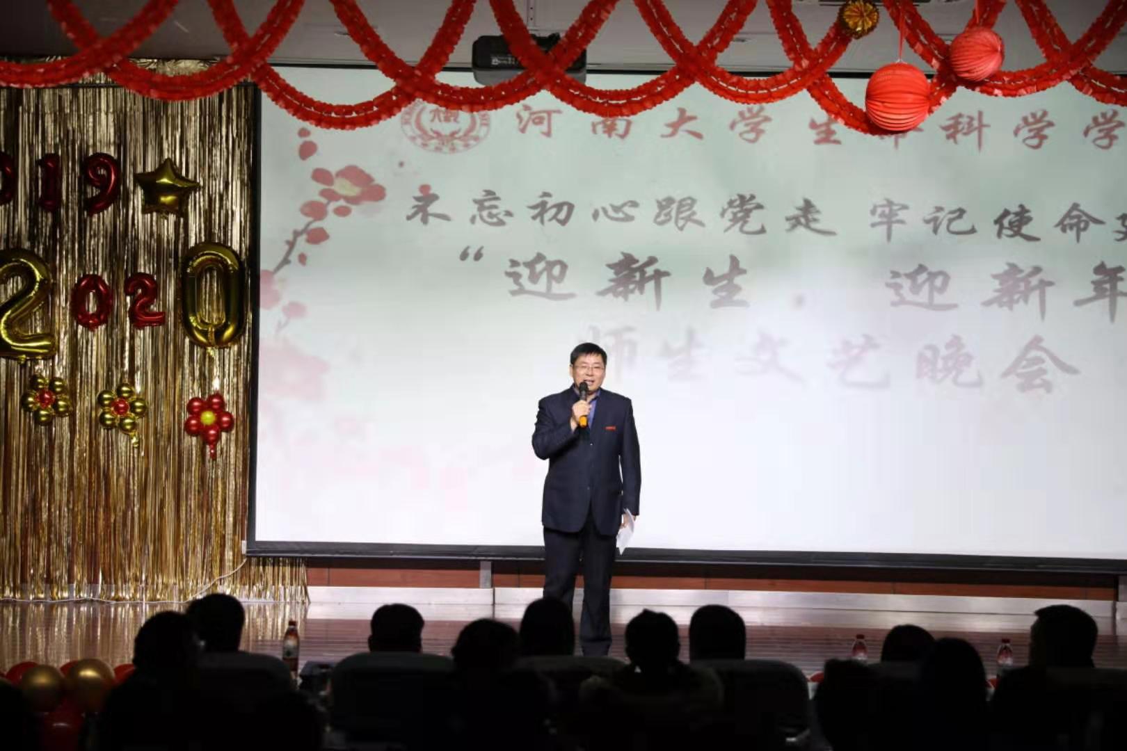 12月21日晚,bat365在线平台官网登录在圆形报告厅举办2019年“不忘初心跟党走,牢记使命建一流”-“迎新生、迎新年”师生文艺晚会。bat365在线平台官网登录团委书记沙莎,bat365在线平台官网登录党委宣传部副部长何威,bat365在线平台官网登录党委学生工作部副部长、学生处副处长肖艳,bat365在线平台官网登录党委书记赵东保,院长张立新,副院长王刚,党委副书记张亚歌,副院长赵海鹏,副院长臧国轻,棉花生物学国家重点实验室副主任郭敬功等领导老师莅临现场,学院400余名师生参加活动。