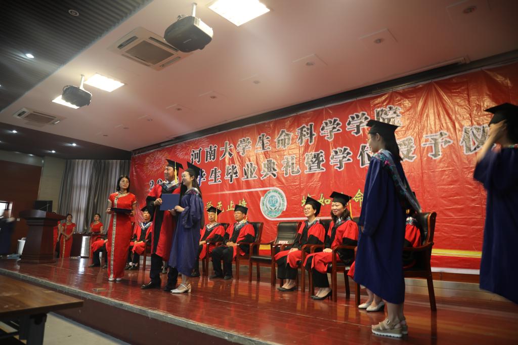 学院党委书记赵东保教授发表讲话。他首先向8名博士毕业生和93名硕士毕业生表示热烈祝贺及感谢,感谢学生们在过去三年里对生命科学的热爱、对科研的执着追求和探索,为学院赢得了荣誉与骄傲,并向帮助毕业生们成长进步的家人、师长和朋友表示崇高的敬意和衷心的感谢。他悉心叮嘱毕业生,希望他们在今后的工作中脚踏实地,用奋斗的汗水圆梦,为母校争光,常回家看看,永远是同学们的坚强后盾和心灵家园,母校的大门永远为他们敞开。