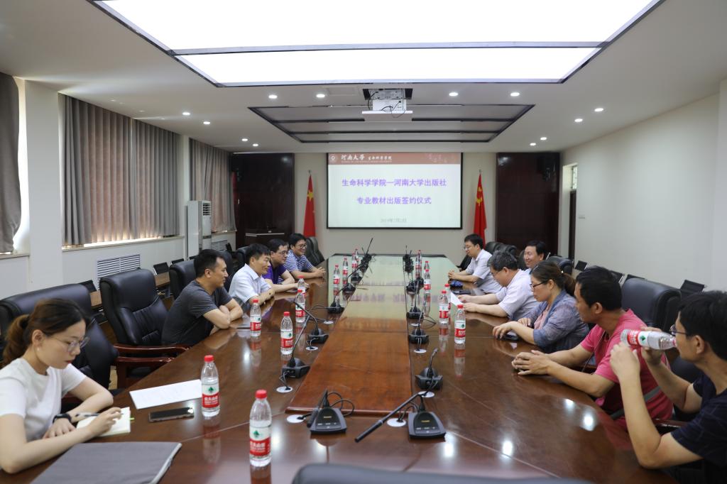 苗雨晨指出,教材建设是我校“双一流”建设的重要构建部分,教材的质量直接体现着高等教育和科学研究的发展水平,也直接影响本科教学的质量。专业教师对于如何将自己丰富的素材形成教材还需要多向出版社学习,希望河大出版社能够在bat365在线官网未来的文化传播和文化传承方面多做指导。袁凯强表示,教材是教师和学生之间沟通的桥梁,希望河大出版社能够为学院教材建设贡献力量,做好服务。同时对如何做好系列教材建设、构建生科院一流教材品牌建设提出了自己的构思和想法。最后表示,希望生科院和河大出版社共同携起手来,为学院专业教材建设和学校“双一流”学科建设做好做强保驾护航。