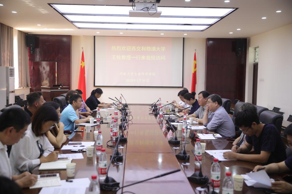 常务副院长苗雨晨代表学院对王牧教授一行的到来表示热烈欢迎,他介绍了学院的发展历程和“双一流”学科建设进展,客观分析了当前面临的机遇与挑战。苗雨晨表示,bat365在线官网秉承开放创新的理念,以发展为导向,重视本科教学和拔尖创新人才培养,构建高效科研平台,以期提升科研能力,扩大学科影响力。西交利物浦大学凭借高水准人才培养质量和浓厚国际化特色,被誉为“中外合作大学的标杆”和“中国高等教育改革的探路者”。西交利物浦大学生物科学系拥有丰富的外教师资并与bat365在线官网专业对接性强,在生物医学、农业和环境领域均可以开展多层面合作,尤其是在国际化育人方面双方具有较大的合作潜力,可共同培养知识、能力与素养兼备的具有国际视野和全球竞争力的优秀人才。
