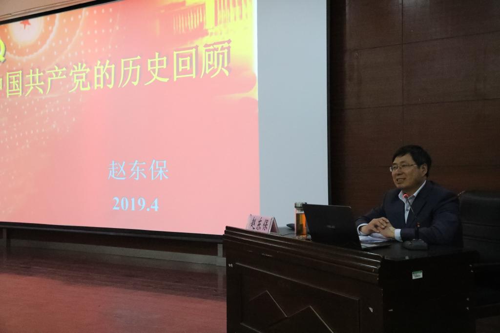 开班仪式后,赵东保给入党积极分子上了开班第一堂课,以中国共产党的历史回顾为题,分别从中国共产党的诞生、中国共产党历次代表大会以及中国共产党90多年的奋斗历程与辉煌成就等内容进行了讲解。他提出,中国共产党是伟大而正确的党,“历史是最好的教科书”,学习党史为党的发展提供了无限的智慧和前进的方向,只有认真学习领会,严于律己,才能早日加入中国共产党。