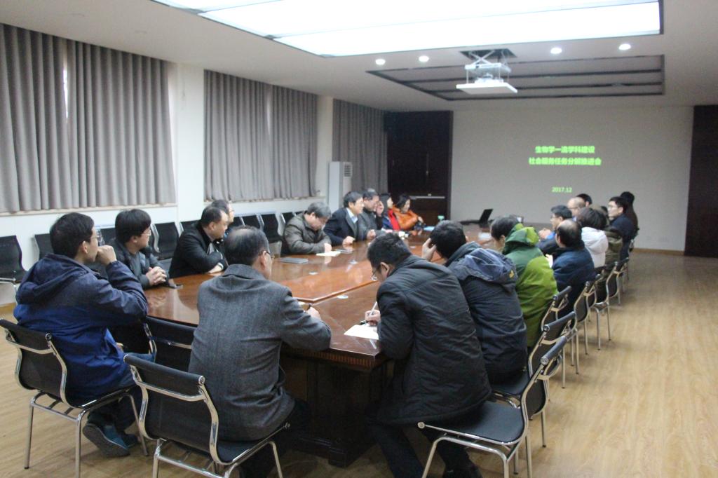12月12日下午,bat365在线平台官网登录在B201会议室召开“生物学一流学科建设——社会服务任务分解推进会”。学院党政班子成员、各系室负责人、特聘教授代表及各课题组相关教师代表参加会议。会议由学院党委书记赵东保主持。
