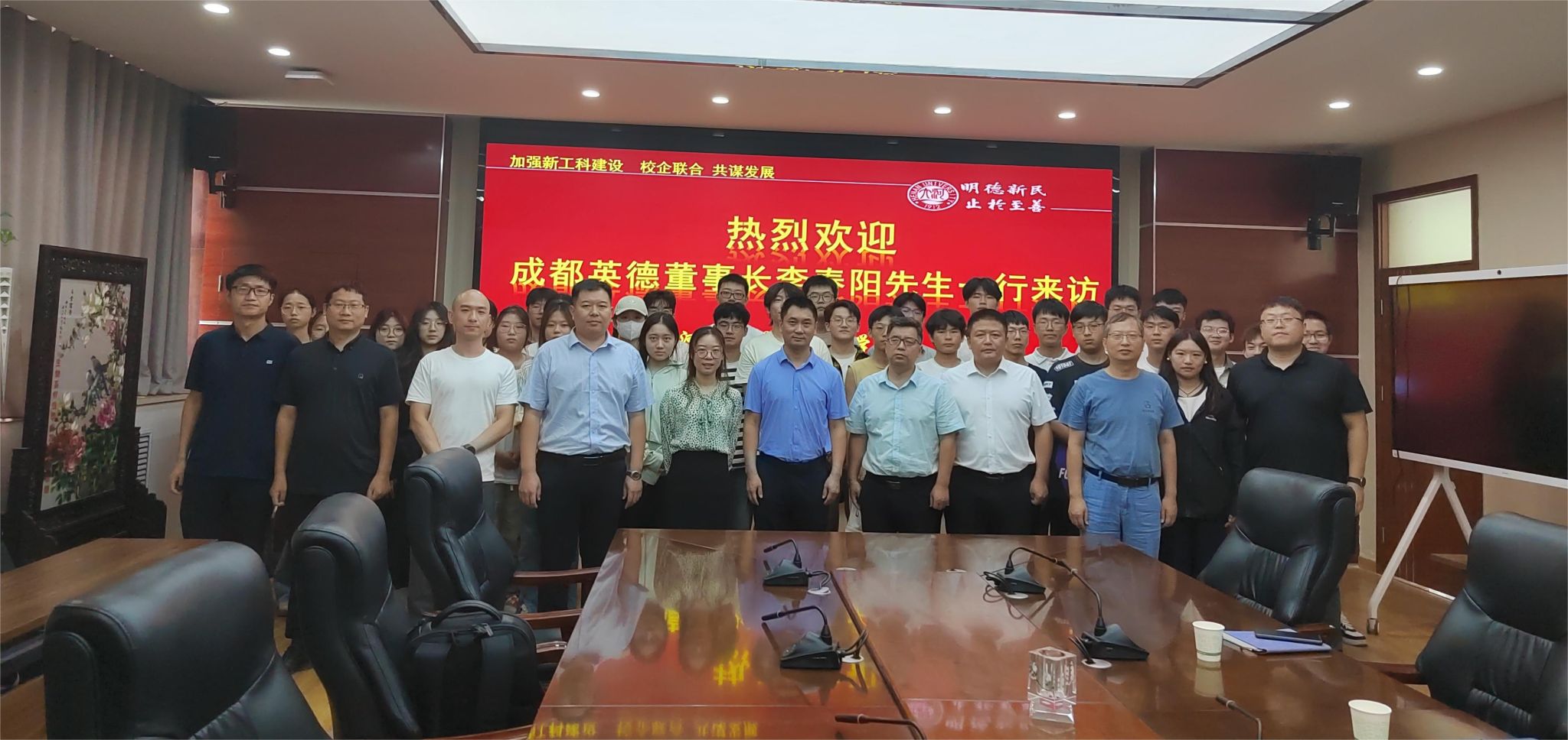 9月9日,成都英德生物医药设备有限公司董事长李春阳、总经理韩飞飞,研发总监靳魁奇一行来bat365在线官网座谈交流;bat365在线平台官网登录教务处副处长朱显峰、bat365在线平台官网登录副院长赵海鹏、生物工程系主任刘宇鹏、生物工程系相关教师及2021、2022级卓工班同学参加座谈会,座谈会由卓工班班主任孙杨主持。
