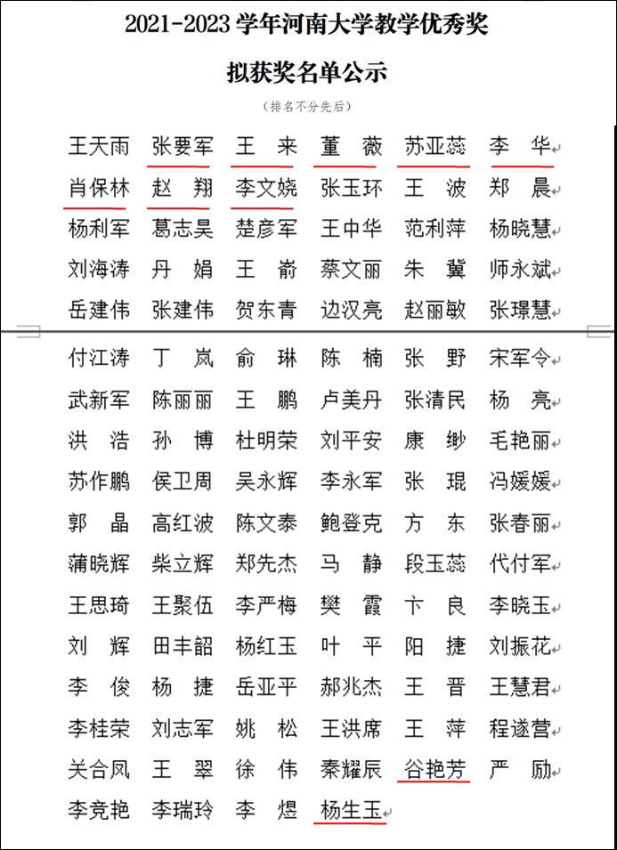 2021-2023学年bat365在线平台官网登录教学优秀奖拟获奖名单公示-bat365在线平台官网登录教务处https://jwc.henu.edu.cn/info/2145/8370.htm