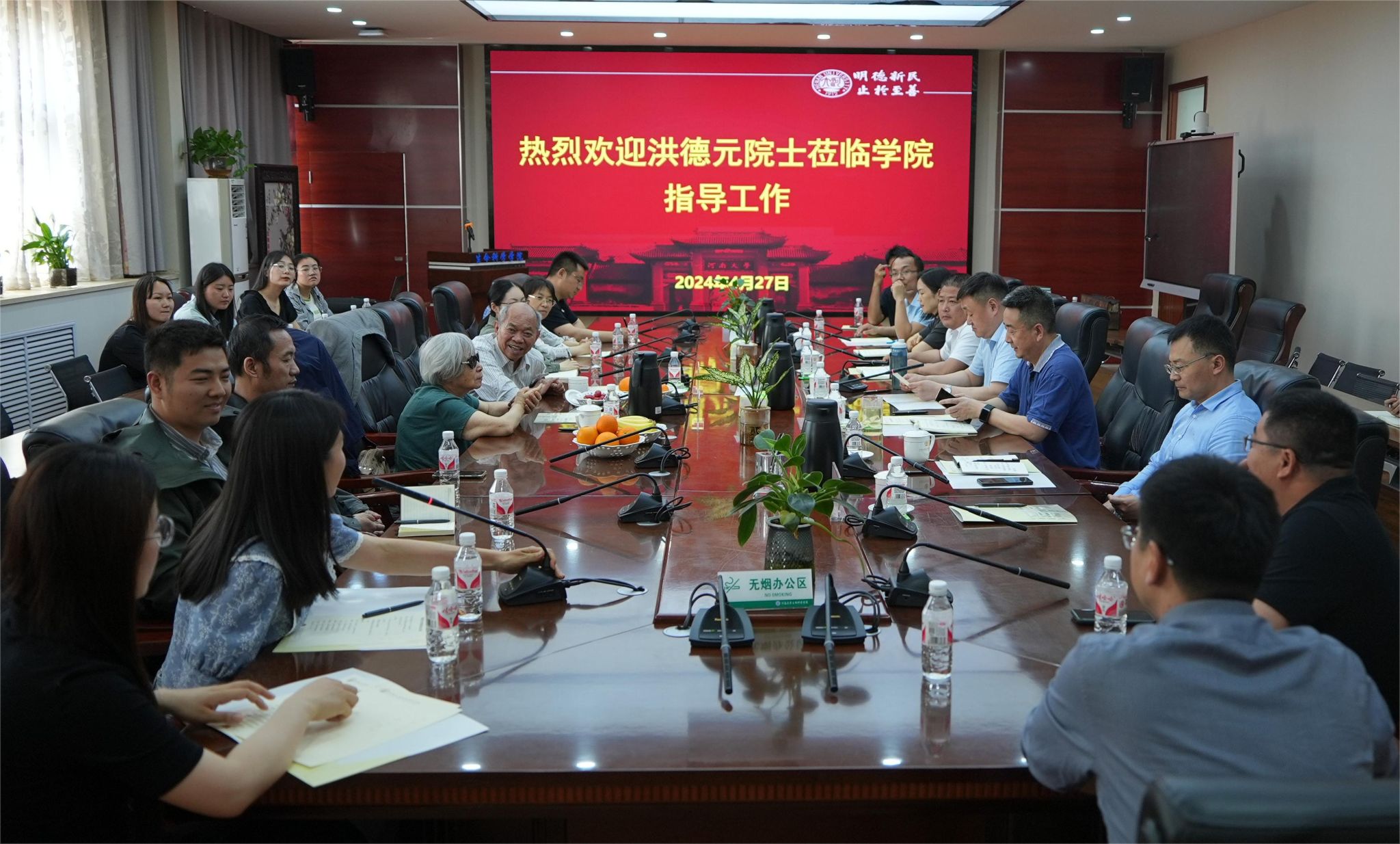 随后,洪院士参加了bat365在线平台官网登录建设发展暨师生座谈会,学院班子成员、教师代表和学生代表参加会议。洪院士表达了自己对植物学研究的热爱和心得与大家进行了交流分享,嘱托年轻学者一定要有责任感、自信心,坚定自己的科研方向,为学科建设发展贡献自己的力量,并围绕生物学学科建设、人才培养、科研研究、师资建设、社会服务等方面进行了深入研讨,给予了建设性的意见。洪院士向学院赠送了《世界牡丹》、《泛喜马拉雅植物志》等书籍,学院赠送汴绣《春满人间》表示感谢。