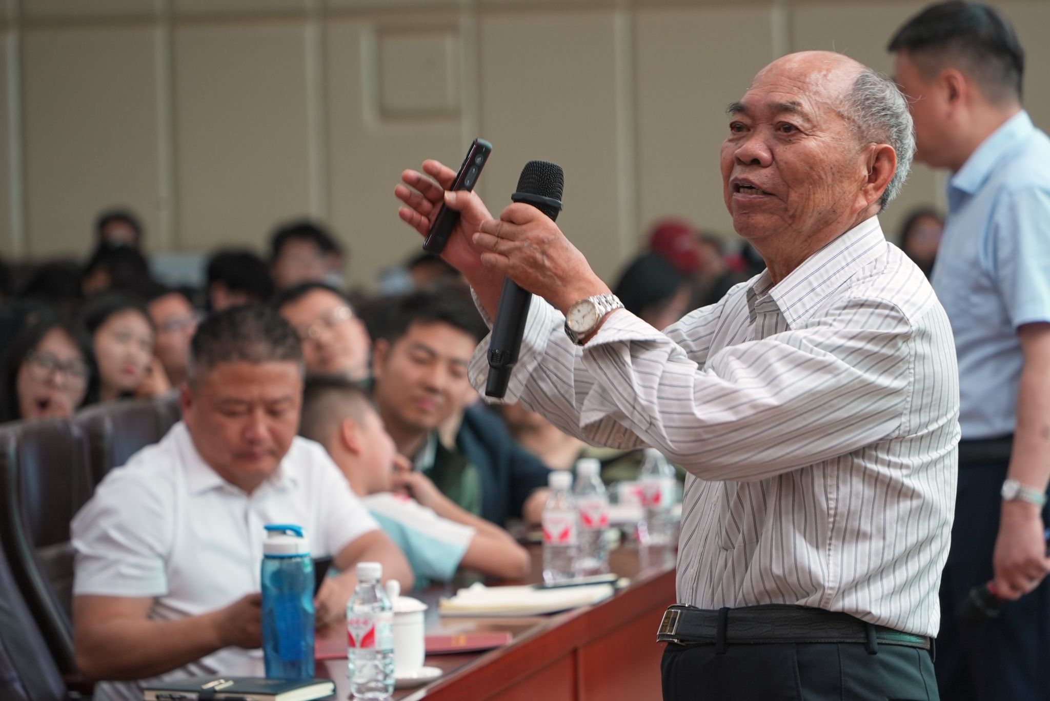洪院士指出世界权威杂志Science在2005年提出的125个科学问题中有3个问题涉及到物种,强调了物种问题的重要性,并对前人的物种概念进行归纳、总结和评述。同时,他分享了对物种的认识和划分物种的形态学原则,对物种的有效保护基础提供方案,并根据自己对世界牡丹和芍药植物长期研究的结果,提出了一个“科学、可操作的物种概念”。洪院士通过诙谐的言辞,传道受业的同时讲述自身求学经历,“科学技术是第一生产力、要把失去的时间抢回来”,时刻心系国家建设和对科学追求的精神引起全场师生的共鸣。报告后的互动交流环节,同学们纷纷就自己感兴趣或困惑之处向洪院士请教,洪院士对所有问题如聚焦兴趣,如何面对研究中遇到的挫折等一一耐心详细回答。