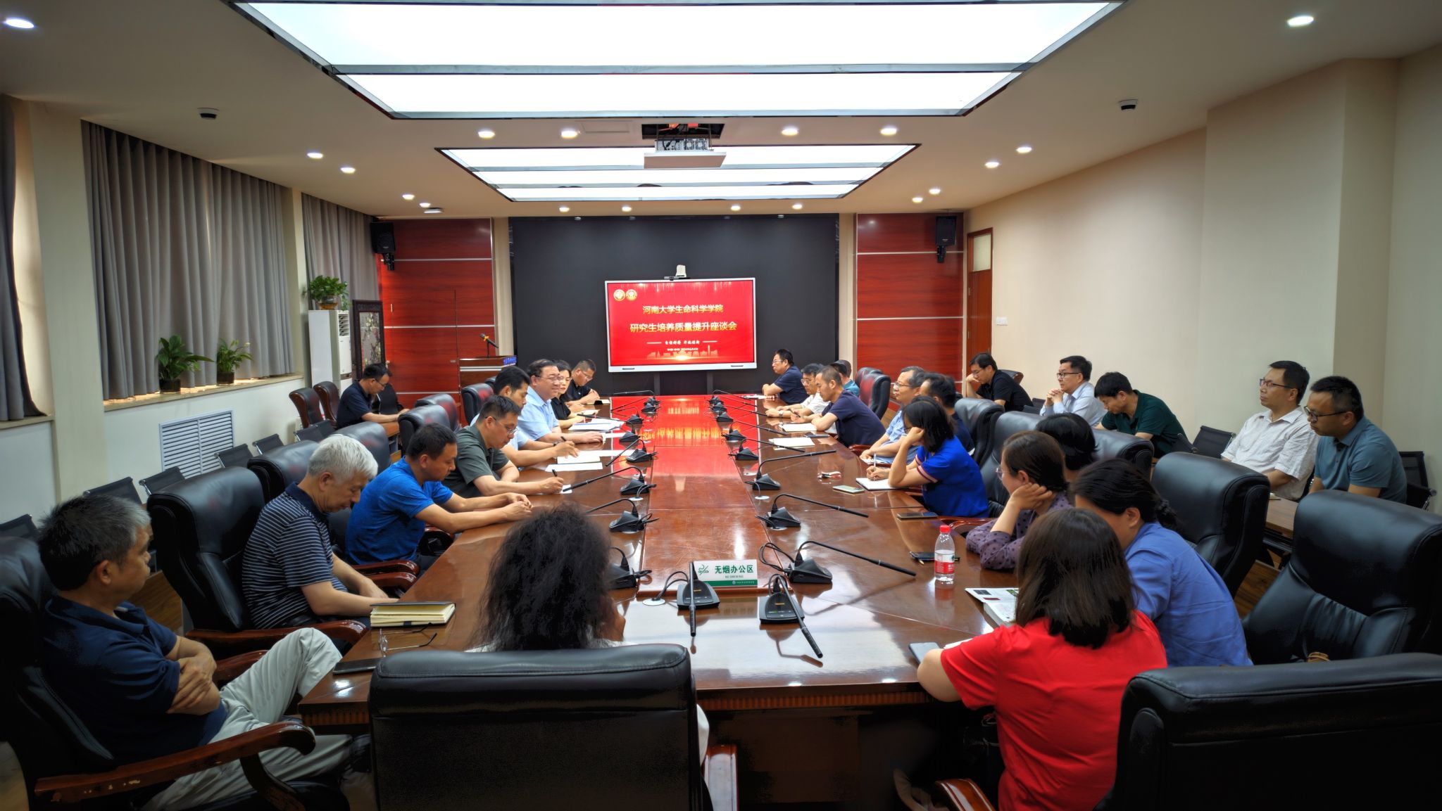 王刚对近年来学院研究生教育取得的成绩给予了肯定,结合生物学一流学科建设目标和研究生培养模式,全面剖析当前研究生培养过程中存在的生源质量、创新能力和升学就业等方面的问题和面临的挑战。他表示研究生培养质量的提升离不开各位导师们的辛勤付出,在进行科研指导和学业教育的同时,也要关注学生的思政引领、心理健康、职业规划等方面的引导,高质量开展以成效为导向的研究生培养工作,切实履行导师职责。